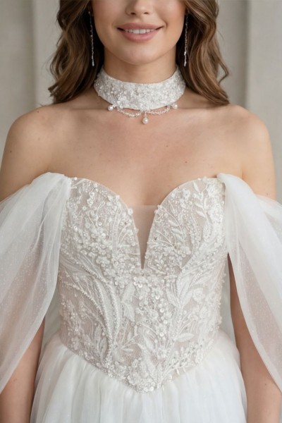 • Свадебное Платье "Памира" с ажурным корсетом , выполнено из кордового кружева, что придает образу элегантность и утонченность ! Юбка с микроблеском из еврофатина, премиального качества!