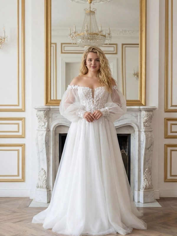 Потрясающее Свадебное платье на корсете, лиф украшен кружевом 3D,пышная юбка евро фатин со шлейфом