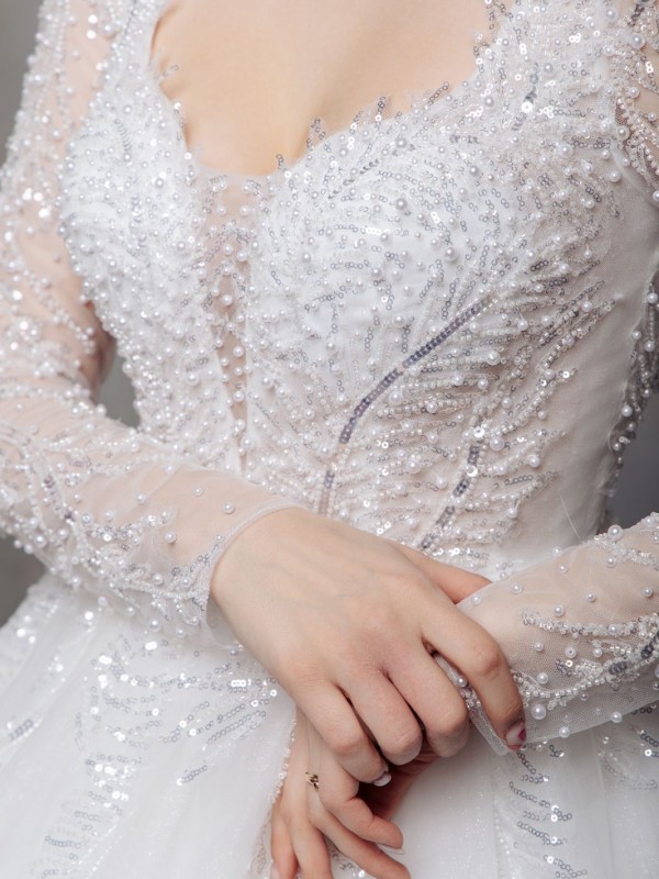 Изумительное свадебное платье,лиф расшит кружевом из пайеток,бисера и блесток,что создает сияющий образ)