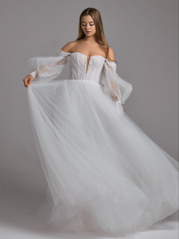 Шикарное/Безупречное/Очаровательное- все комплименты этой модели свадебного платья ! Идеальная посадка на любую фигуру, усыпано шиммером , который будет богато сверкать при любом освещении